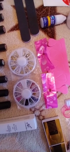 Набор пришёл ровно за неделю, со мной связалась доставка, и курьер бесплатно всё доставил. Лампа и ручка фреза отлично работают. Делала маникюр впервые в жизни, думаю для 1-го раза хорошо получилось. Украшения для ногтей мне очень понравились, особенно стразы и блёстки в коробочках.Я их нанесла на гель лак, затем покрыл топом, отлично держит, но по желанию можно их приклеить клеем, который идёт в наборе. Цвета гель лаков понравились, но в самой бутылочке мало гель лака(думаю за такую цену это не так страшно), гель лак и база при высыхания с липким слоем(я с лёгкостью убрала его спиртом), но топ очень порадовал тем, что он напрочь высыхает. Хочу сказать большое спасибо за подарок продовцу. Продавец положил 2 браслетика. Набор пришёл в двух коробках, которые приклеены скотчем, и кажется что это 1 коробка, также он ОЧЕНЬ хорошо упакованный(на фото). Заказывала в черную пятницу с купоном на 500 рублей и со скидкай(в связи с чёрной пятницей), вышло где-то примерно 1500. В общем, рекомендую)