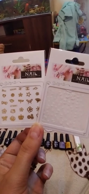 Спасибо продавцу что так быстро отправил! Итак:Набор пришёл полностью,лаки наполнены нормально, цвета пришли как на фото, всё работает, упаковано отлично!Единственное, тонкие наклейки пришли одинаковые (должны быть 1 серебряная и 1золотая- у меня 2 серебряных) но это не страшно. Выбирала доставку из России и пришло очень быстро В подарок от продавца золотые наклейки ☺