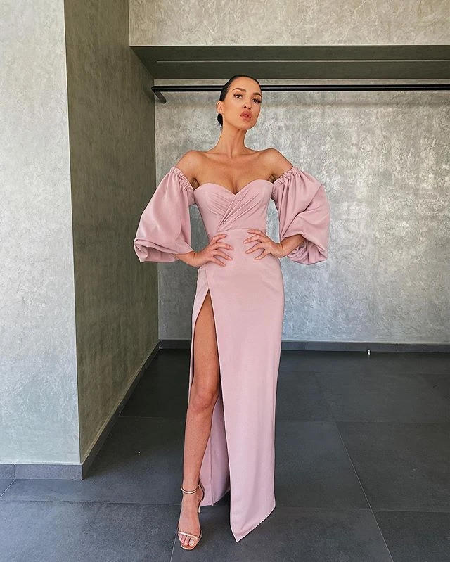 Женское атласное вечернее платье LORIE, длинные платья для выпускного бала, размера плюс, с открытыми плечами, с высоким разрезом, 2020