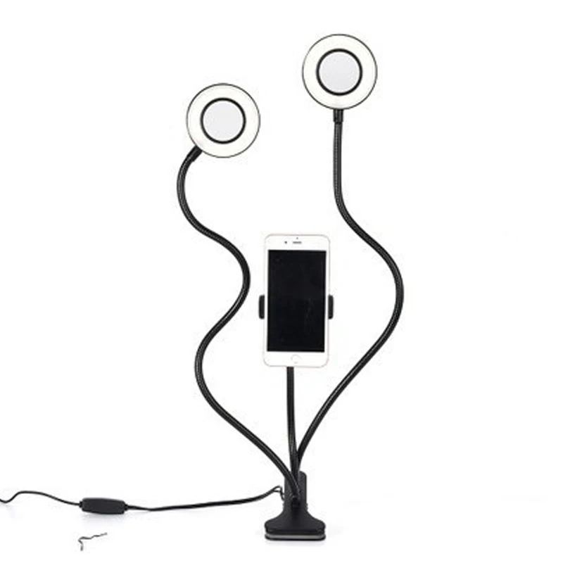 Световое кольцо для селфи, LED-лампа универсальная с гибким держателем для телефона, крепление к столу, для съемки видео, в офисе и на кухне