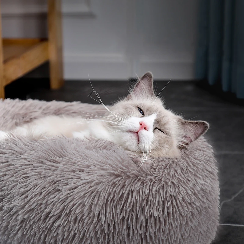 Кровать для собак, длинная плюшевая корзина, успокаивающие кровати для кошек, домик для питомцев, мягкая пушистая подушка, спальный мешок, коврик для больших собак