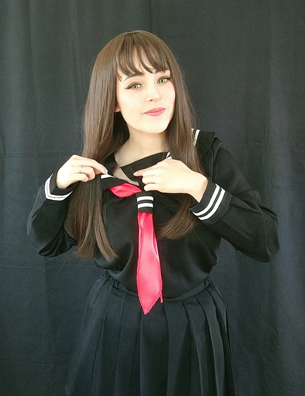 Униформа отличная! Как раньше сказали люди, галстук немного тусклый, но я был в курсе этого, и я хочу Переключить его на желтый. Я заказал самый большой размер, и он идеально подходит для моего большого бюста. Это немного сложно снять, а юбка очень короткая на рост 168 см. Но ткань отличная и прочная.