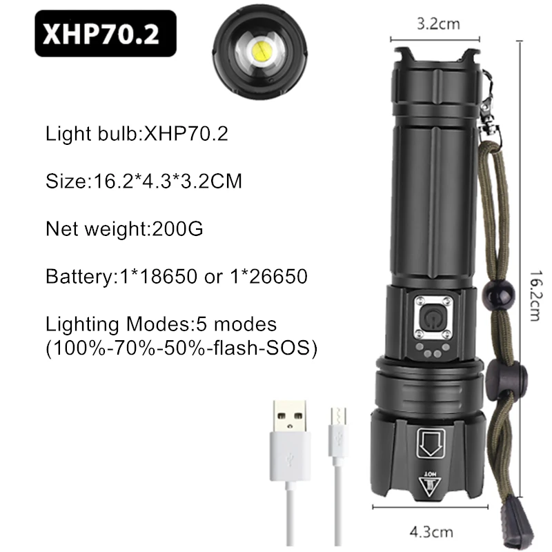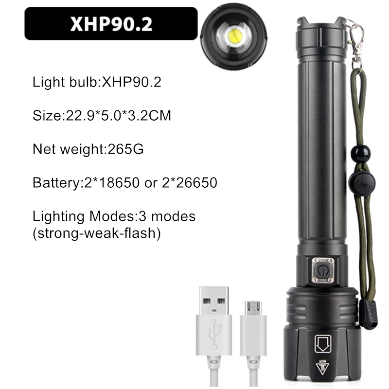 Самый мощный светодиодный фонарик XHP90.2 XHP70.2 XHP50, Перезаряжаемый USB масштабируемый фонарик 18650 26650, охотничий фонарь для кемпинга и рыбалки