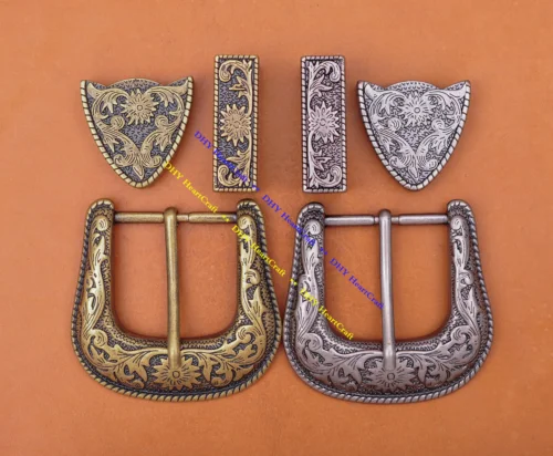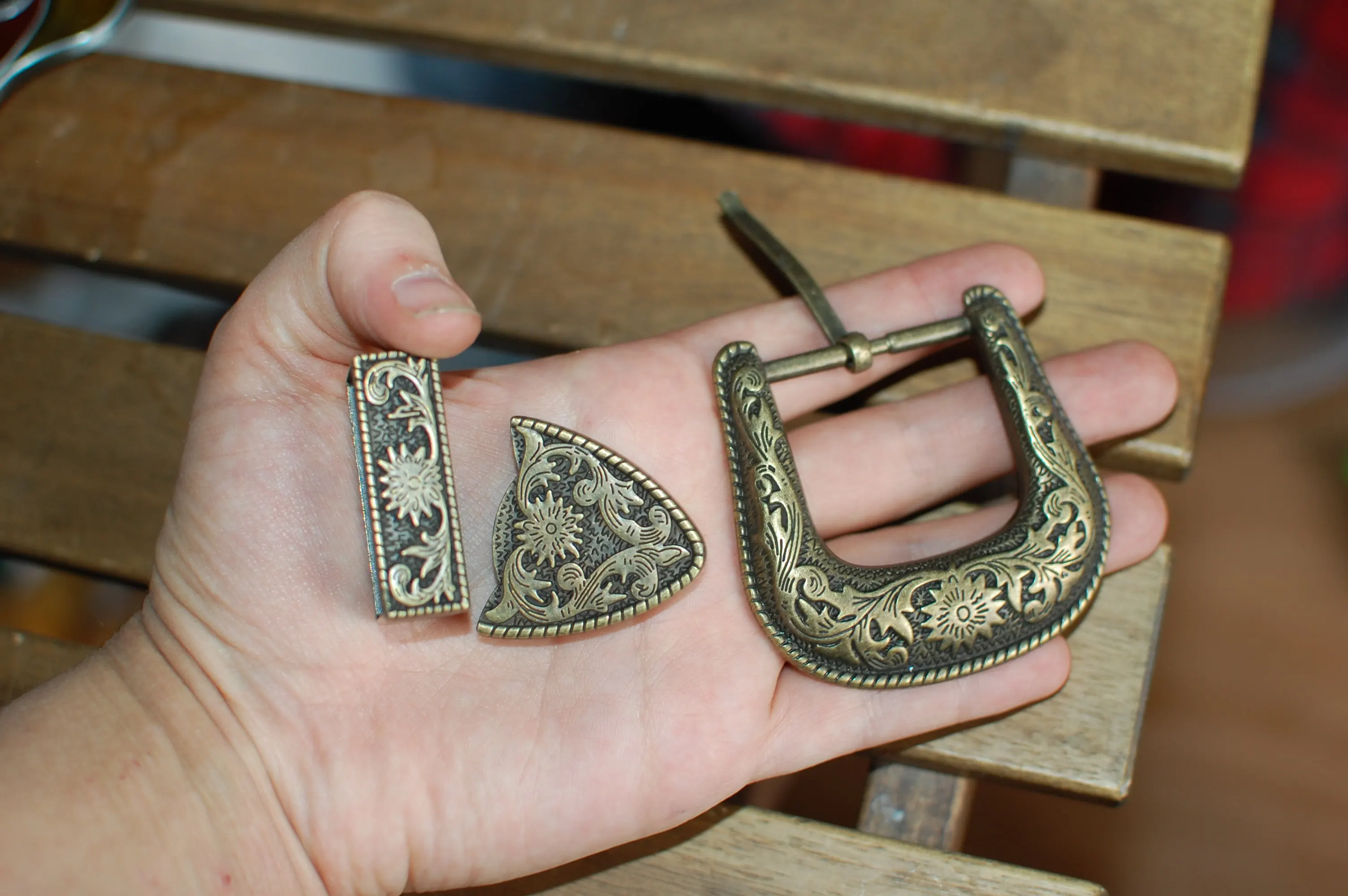 Ремень с пряжкой в стиле вестерн, 3 предмета, античная латунь, цветочный дизайн, унисекс, 1 12 дюйма