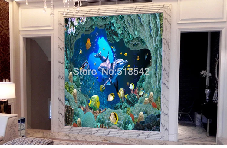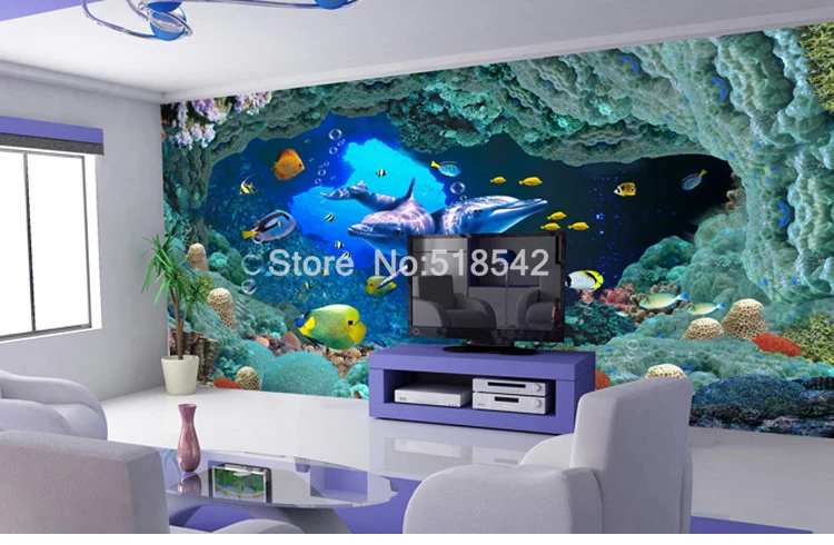 Пользовательские 3D настенные фрески обои подводный мир Дельфин Тво...