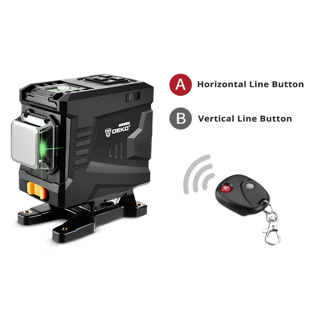 DEKO DKLL12PT1 12 линий 3D зеленый светильник Горизонтальные и вертикальные линии лазерный уровень с дистанционным управлением, высокая точность, самовыравнивание