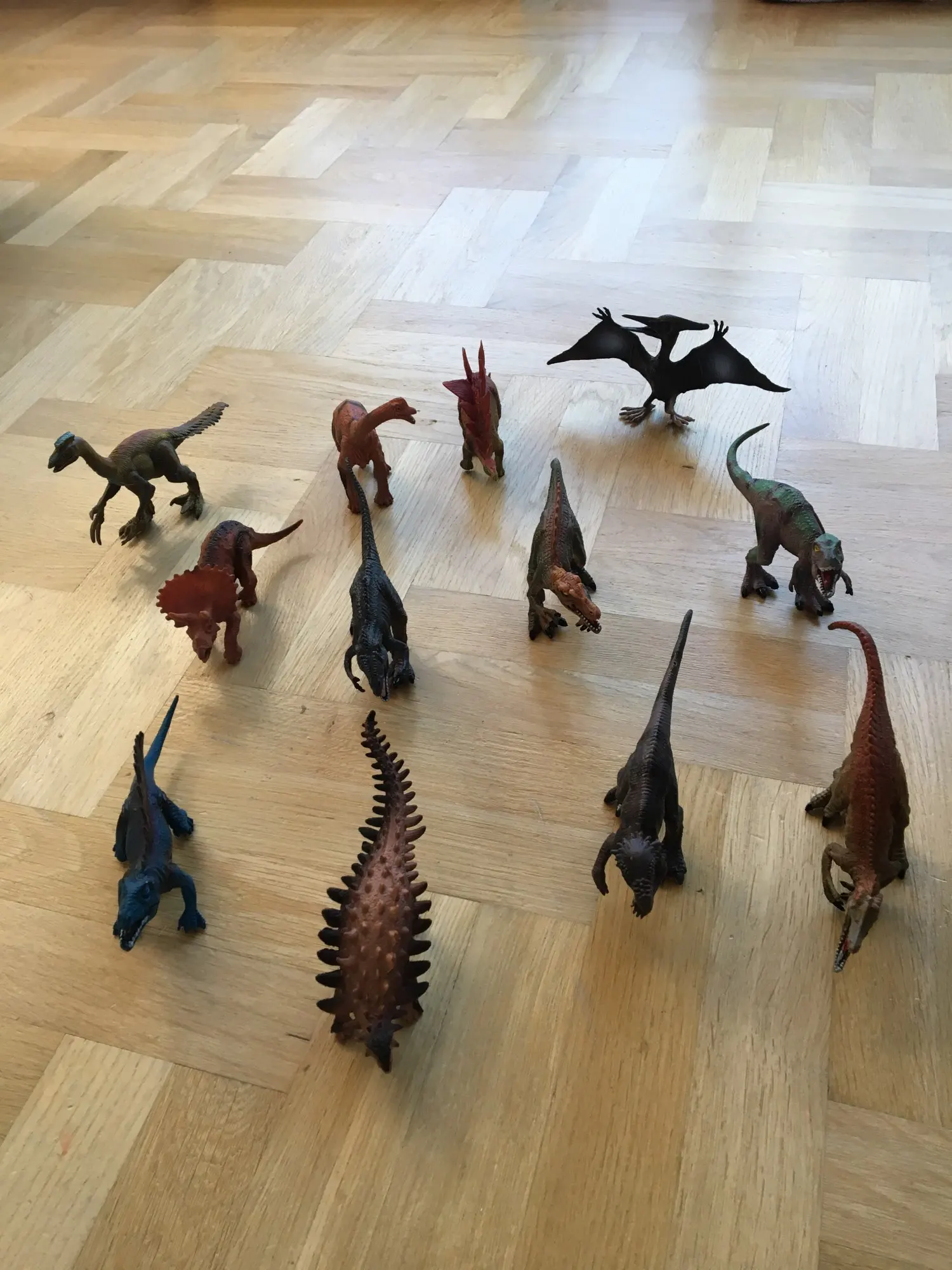 наборе из 12 динозавров.фигуры маленькие и жесткие.взяла 2 набора.а по итогу оказались одинаковые фигуры,только окрашены по разному.разочарована.