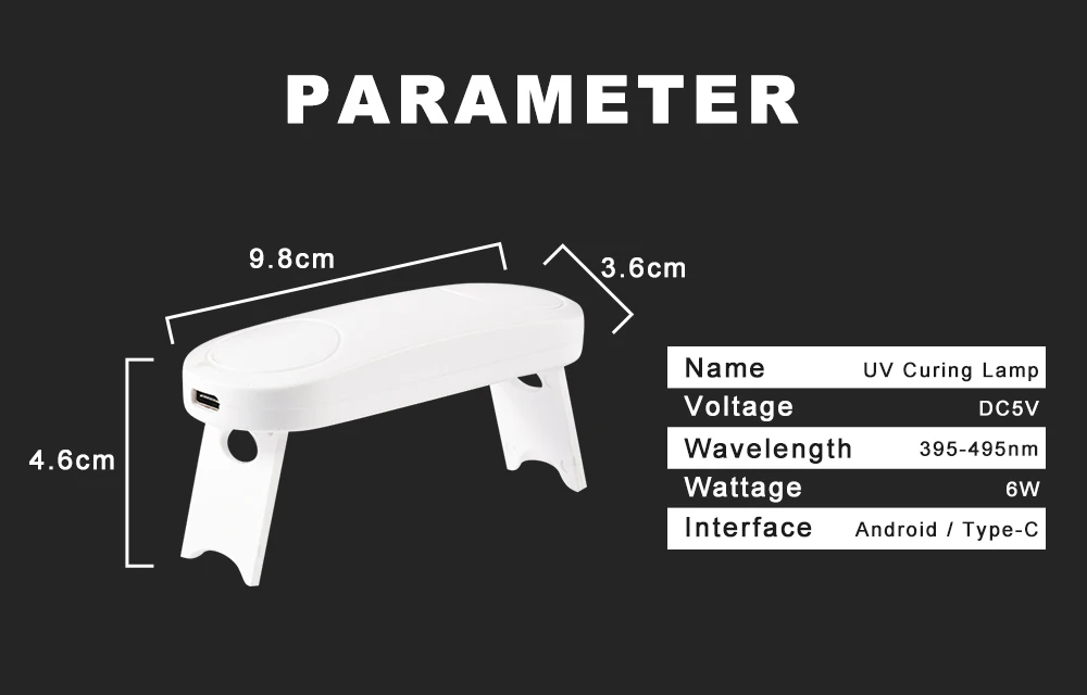 УФ-лампа для отверждения ногтей, складная, 5 светодиодный постоянного тока, 6 Вт, 3 светодиодный