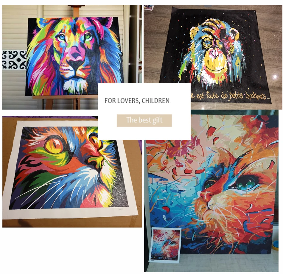 HUACAN живопись по номерам Рисование животных на холсте Ручная росп...