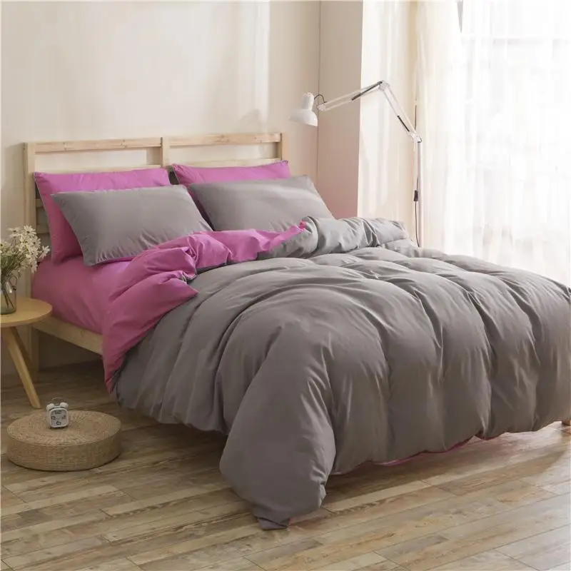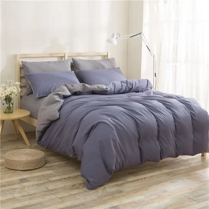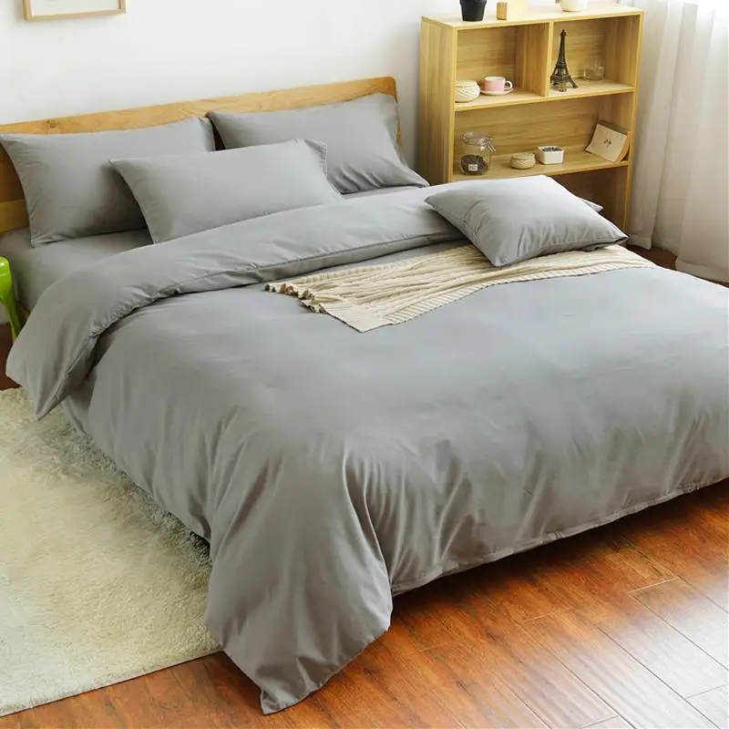 Постельных принадлежностей серый Пуховое одеяло для кровати, набор, Одноцветный плоский лист 3/4 шт. Комплект постельного белья Nordic домашний текстиль для один двойной крюк
