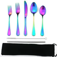 Набор разноцветных радужных столовых приборов из нержавеющей стали 304, столовый набор с вилкой, элегантные столовые приборы в западном стиле, 5 шт.