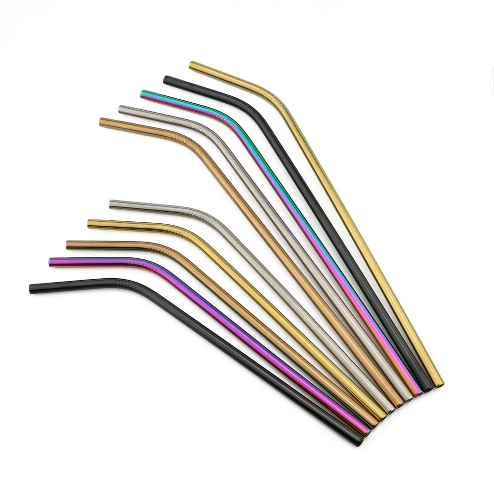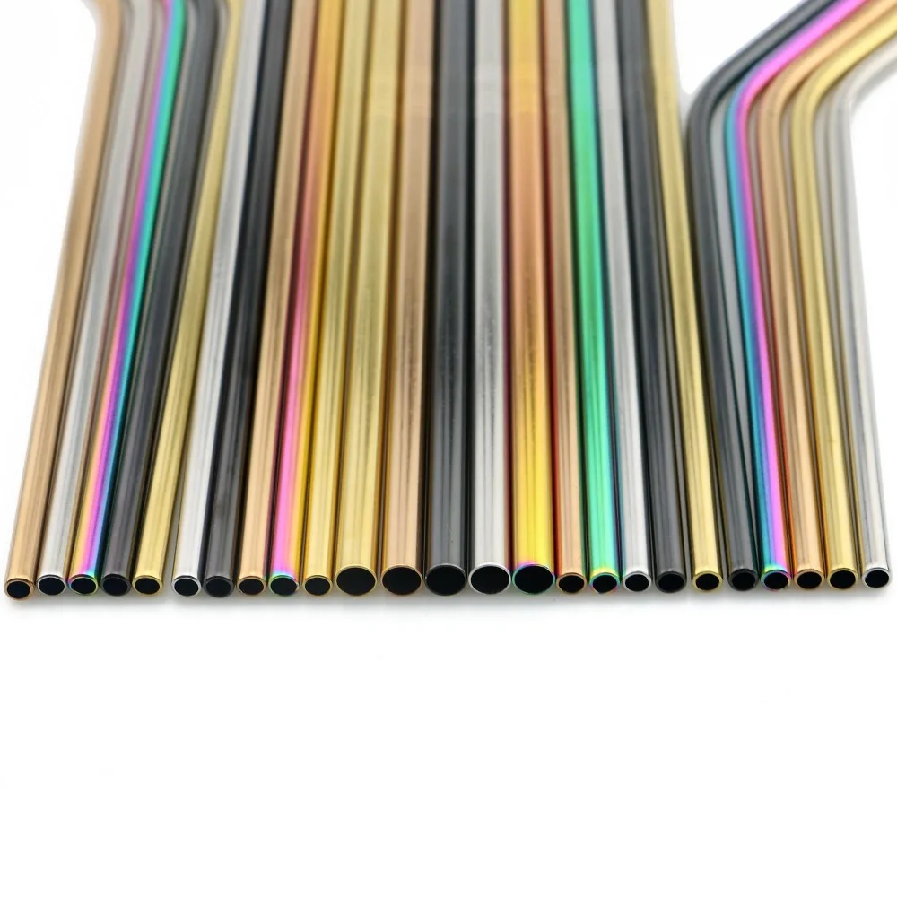 2 шт.компл. красочное питье соломинки 304 нержавеющая сталь металл прямой и согнутый многоразовый с кистью фрукты JuiceTea кофе инструменты