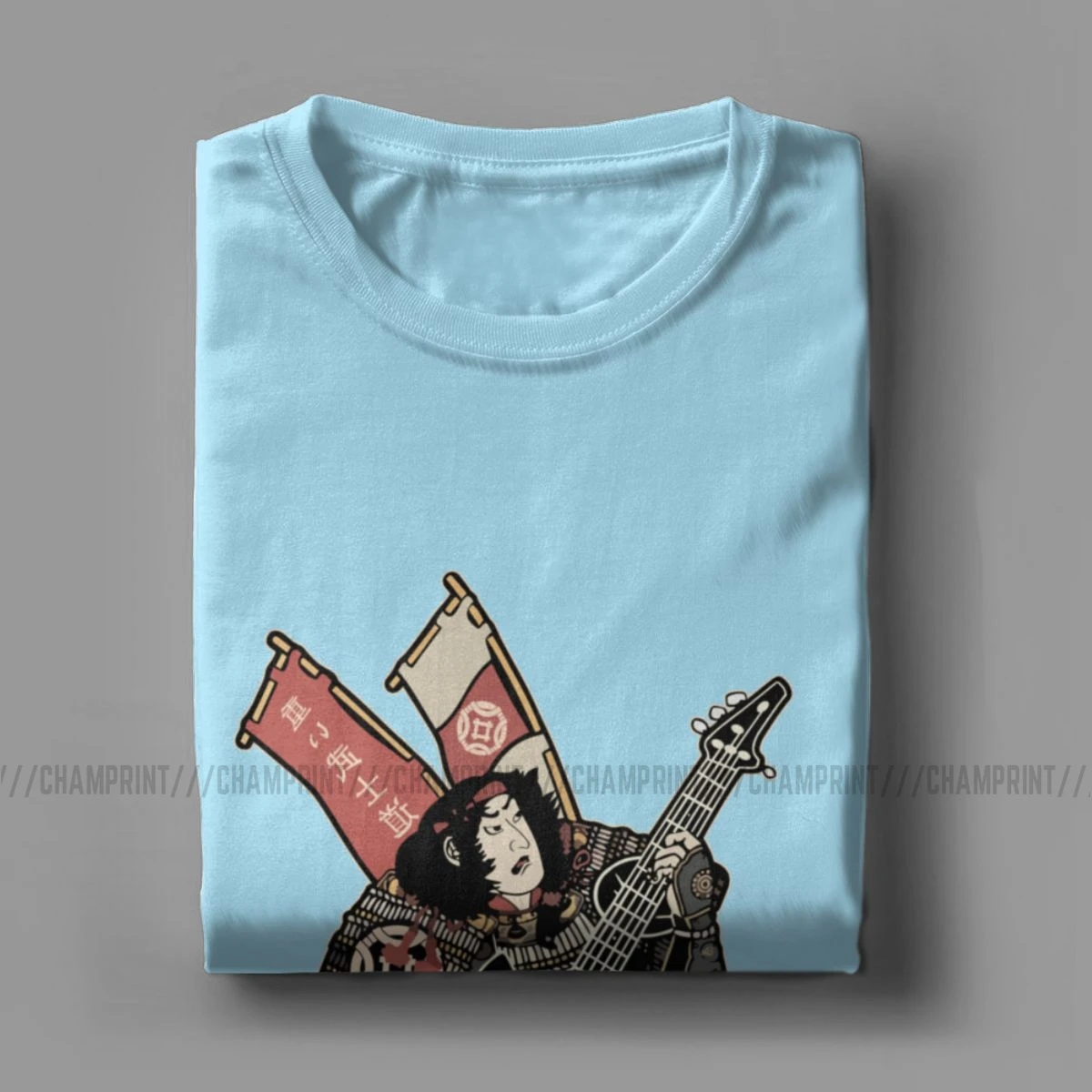 Тяжелая Мужская футболка Bushido с самураем, гитарой, рок, басом, металлической музыкой, забавным японским проигрывателем, новинка, футболки с круглым вырезом, Новое поступление, топы