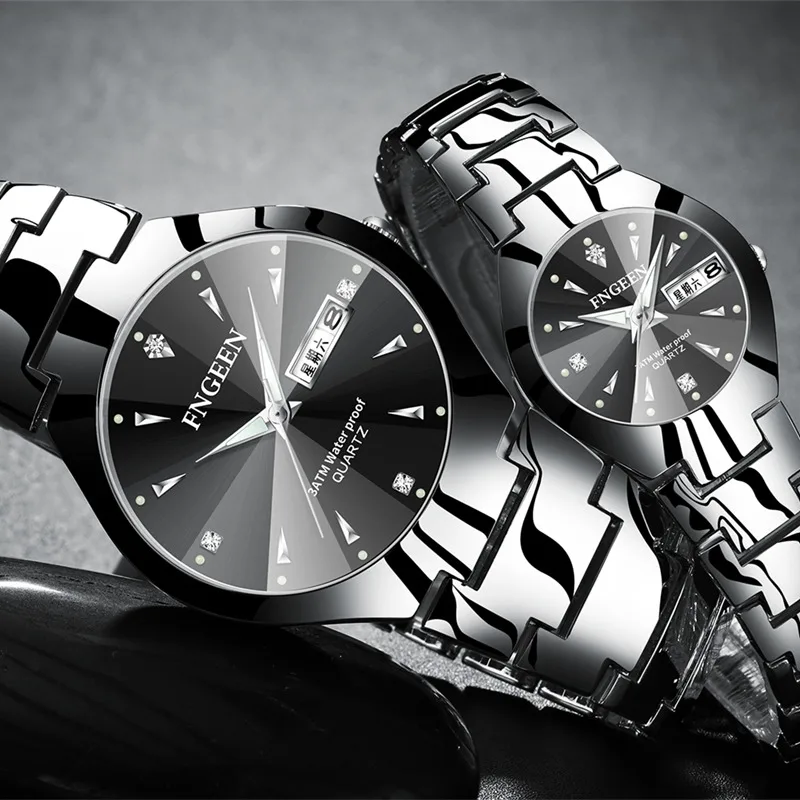 Relogio Feminino FNGEEN парные часы Мужские кварцевые часы для влюбленных Роскошные Wo мужские наручные часы Рождественские водонепроницаемые из нержавеющей стали