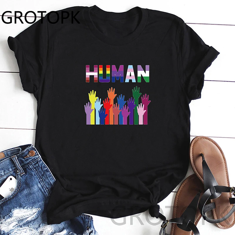 С изображением ЛГБТ-радуги человеческими руками Графический забавная футболка для женщин Harajuku 90S футболка эстетическое модное футболка топы, футболки
