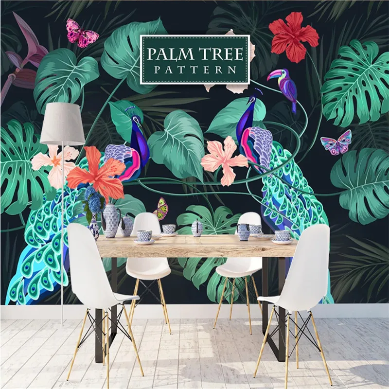Тропический тропический лес павлин джунгли Диван ТВ фон настенная 3D Бумага для ресторана кафе промышленный Декор настенная 3D Бумага