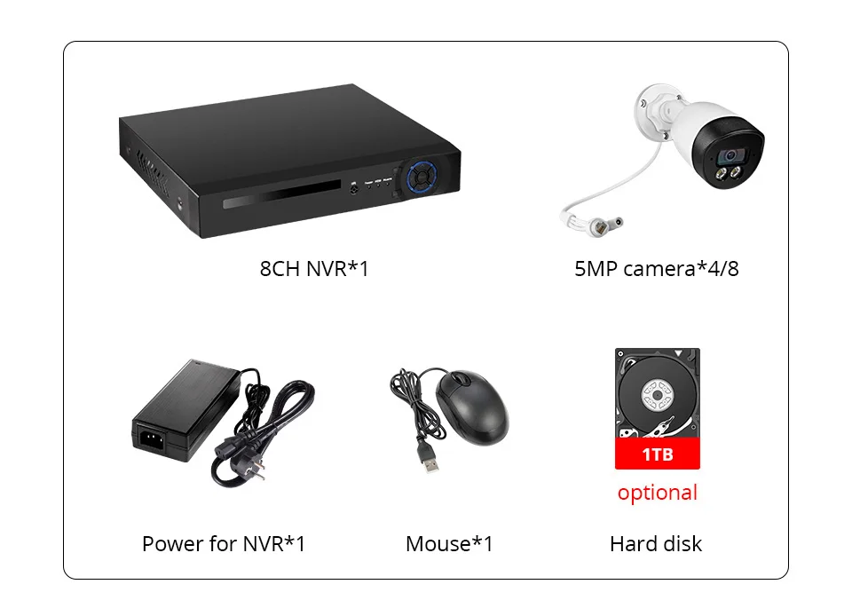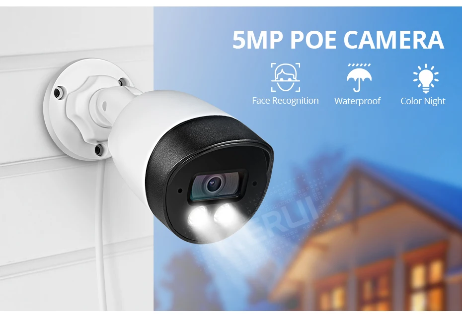 Камера видеонаблюдения KERUI H.265, 8 каналов, 5 Мп, NVR, POE