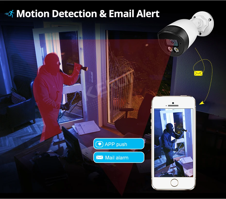 Когда кто-то вломится в зону съемки, камера будет издавать звуковой сигнал и сообщения тревоги будут отправлены в приложение вашего телефона