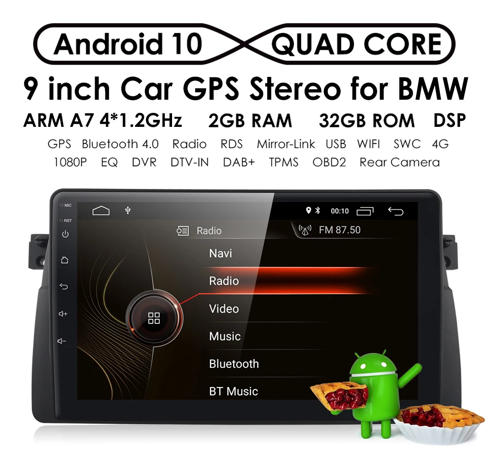 Автомагнитола для BMW E46 M3 318i 320i 325i, мультимедийная стерео-система на Android 10, с 9 "экраном, без DVD, с MirrorLink, для BMW E46, M3, 318i, 320i, 325i, BT, SD