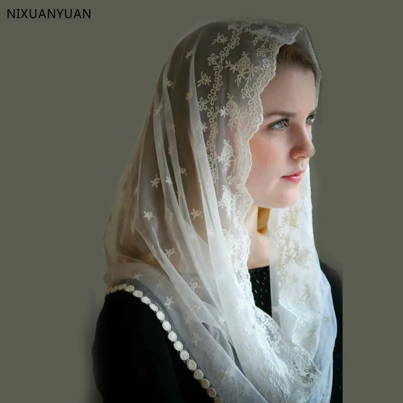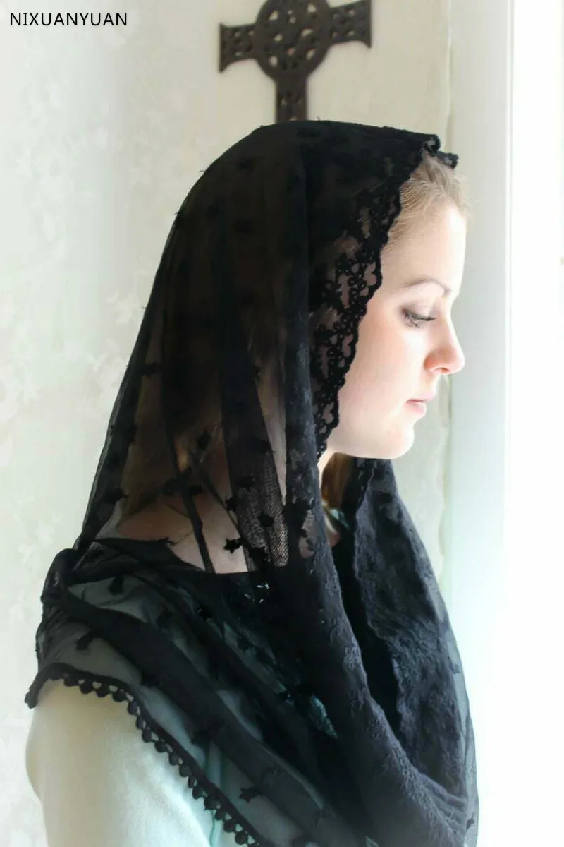 Шаль кружевная женская, цвета слоновой кости, католическая, черная, 2021