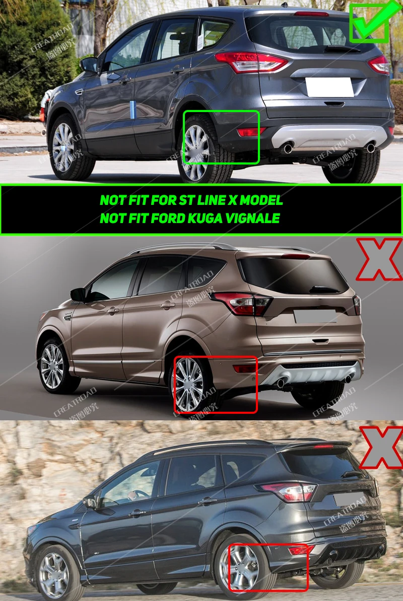 Фитинг: для Ford Escape/ Kuga 2013-2019Не подходит для моделей четвертого поколенияНе совместим с заводскими беговыми досками (передняя защита от брызг ударяет Беговая доска)Не совместим с комплектом аэродинамики, боковыми юбками, комплектом для тела и т. д.Не подходит для Модели ST line XНе подходит для Ford Kuga Vignale