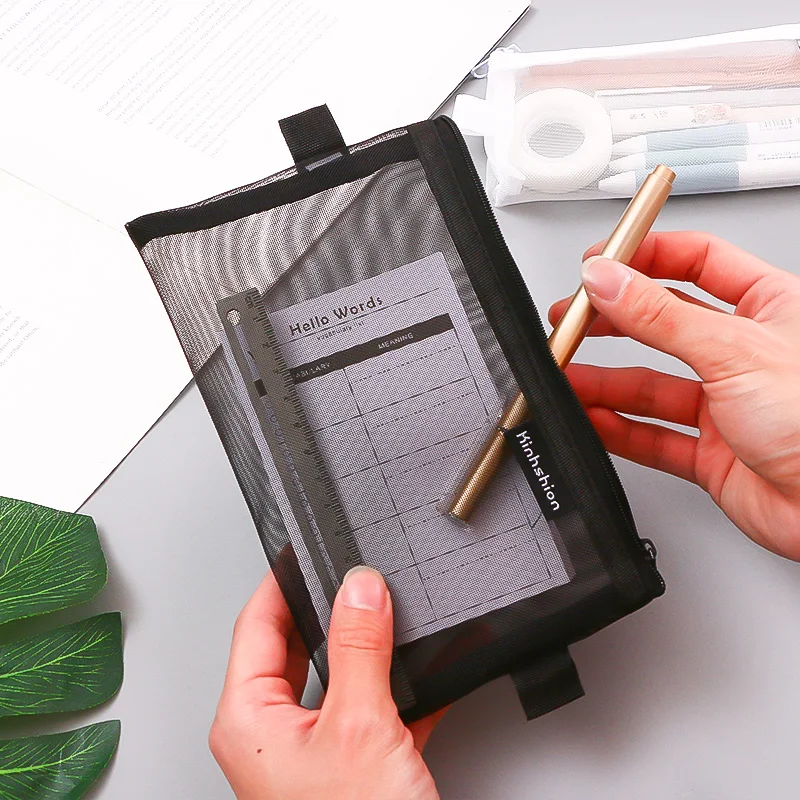 Простой Прозрачный сетчатый чехол для карандашей, офисный чехол для...