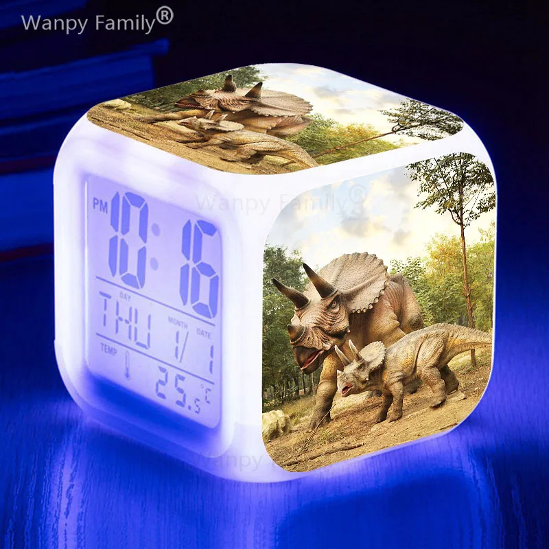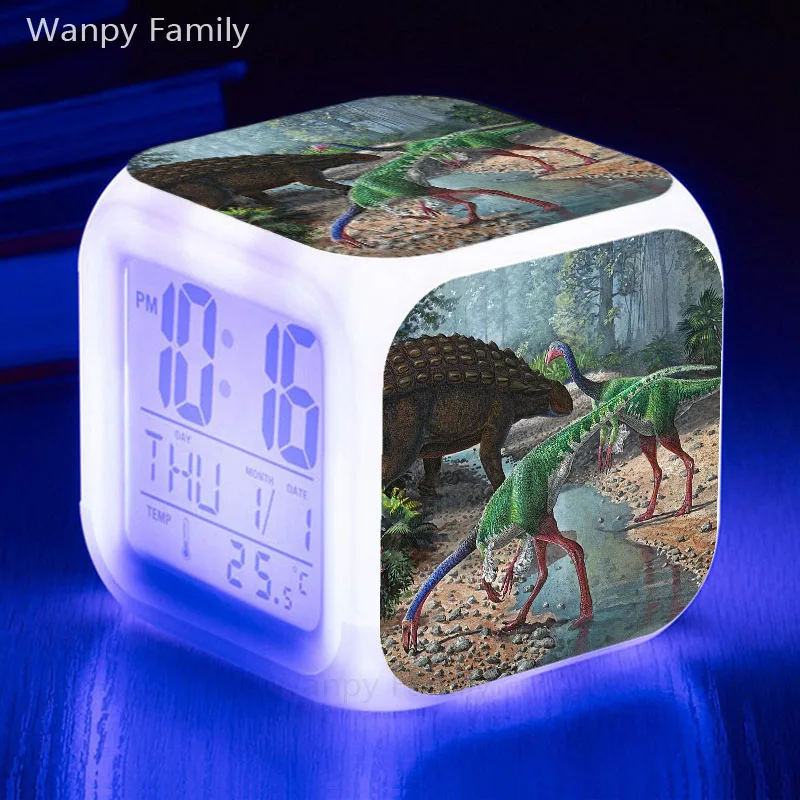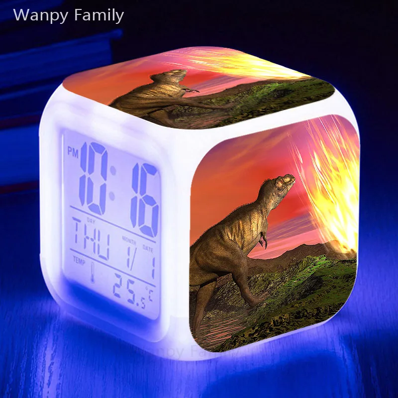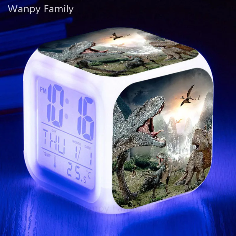 Цифровой будильник с динозавром, светящиеся светодиодные часы с изменением цвета, для детей, кукол Юрского периода, настольные часы
