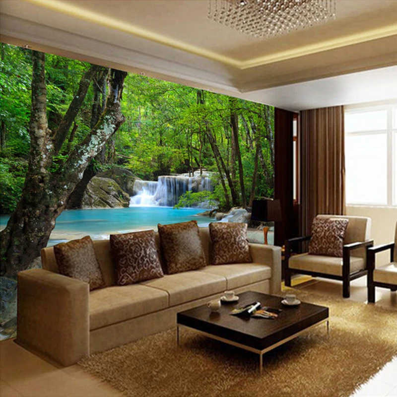 Пользовательские 3D фото обои лес водопад Зеленый пейзаж настенные ...