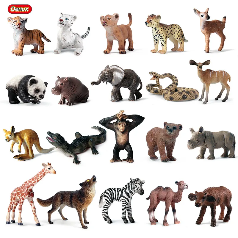 Характеристика:Oenux классические Африканские Дикие животные лев тигр Волк крокодил Жираф Модель зебры Фигурки ПВХ миниатюрные Развивающие игрушки для детей