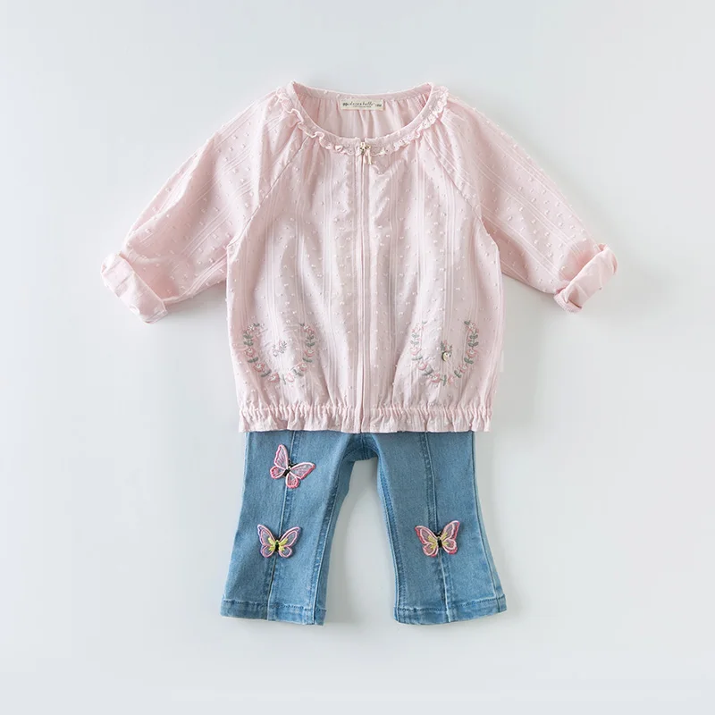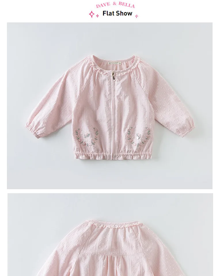 Верхняя одежда с цветочной вышивкой для девочек, на молнии
