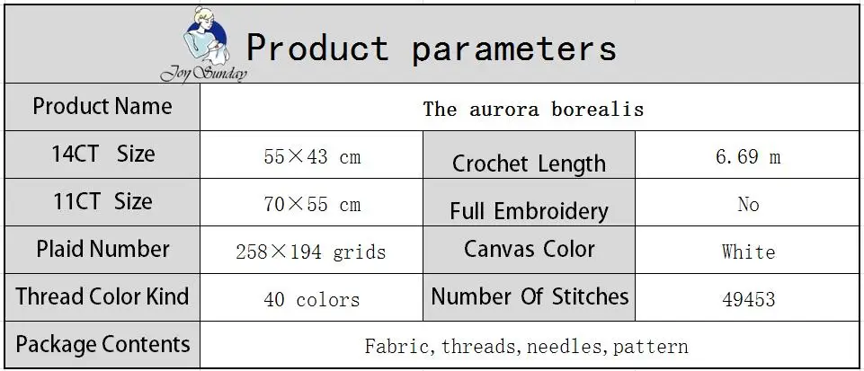 Размер вышивки:14CT:55 × 43 см 11CT: 70 × 55 см