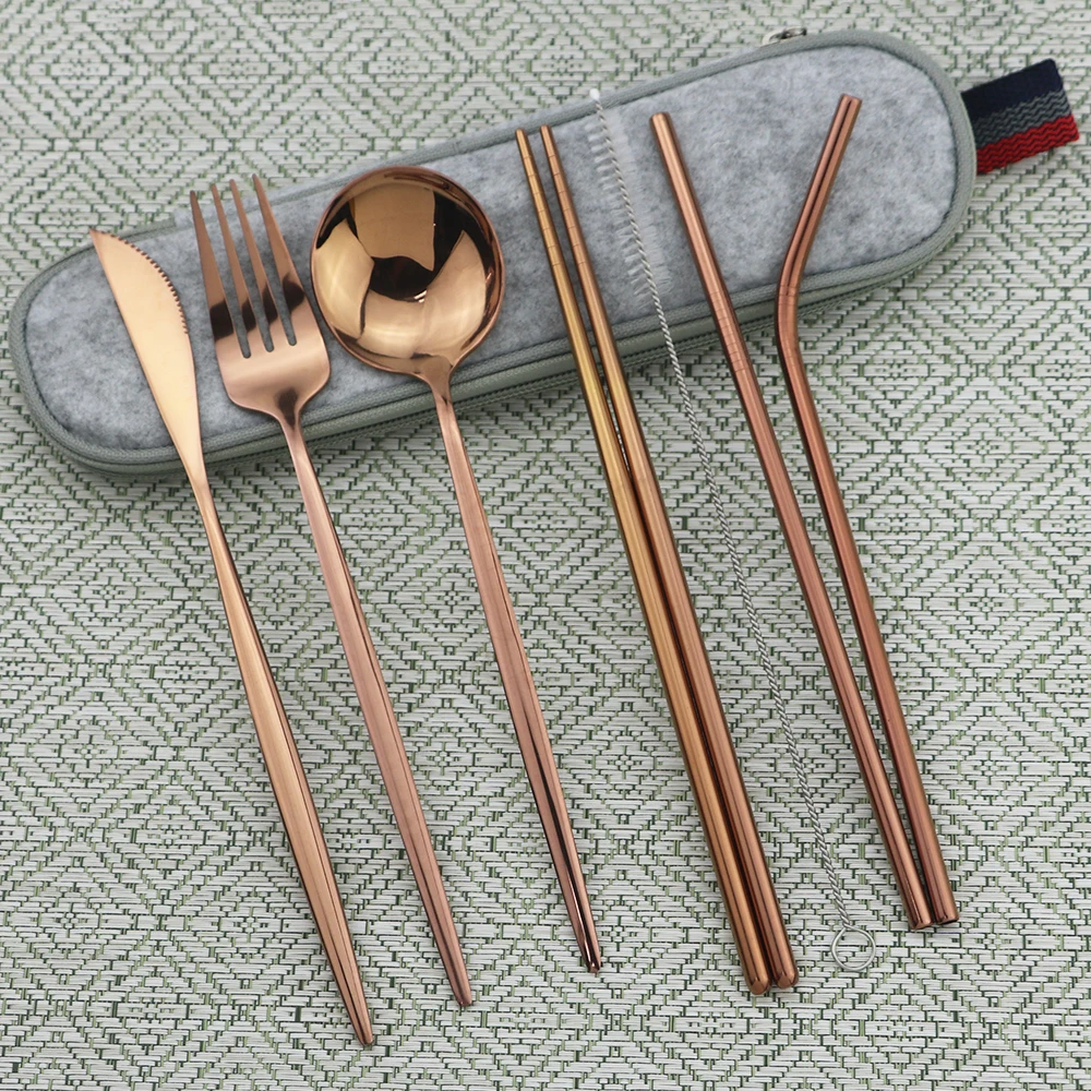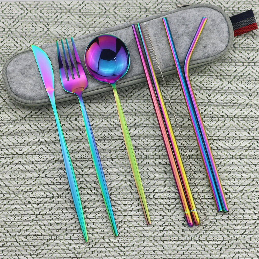 8 шт., портативный набор столовых приборов из нержавеющей стали