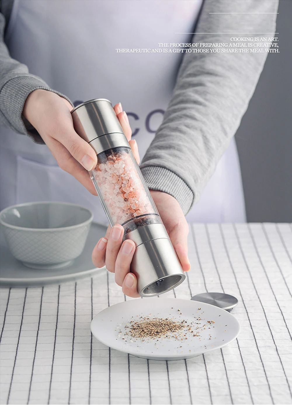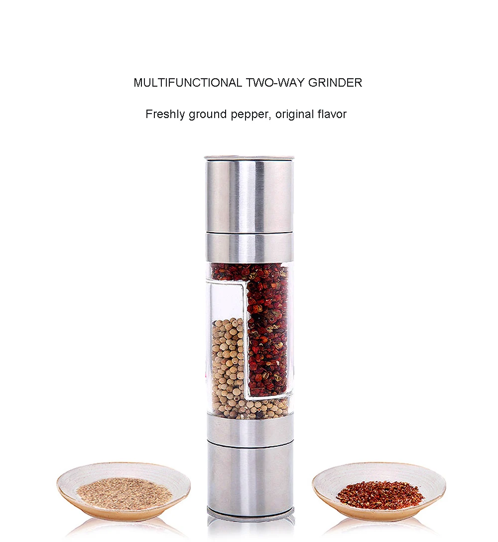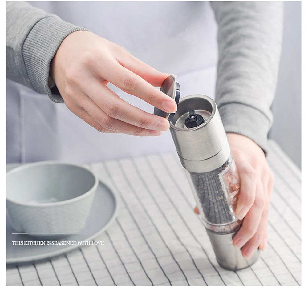 Мельница для соли и перца из нержавеющей стали, набор 2 в 1, регулируемая керамическая мельница для морской соли и перца