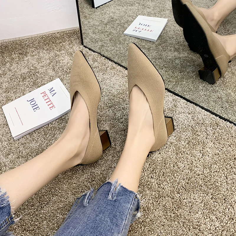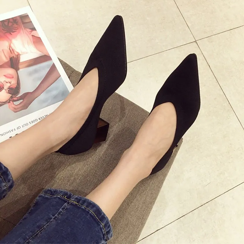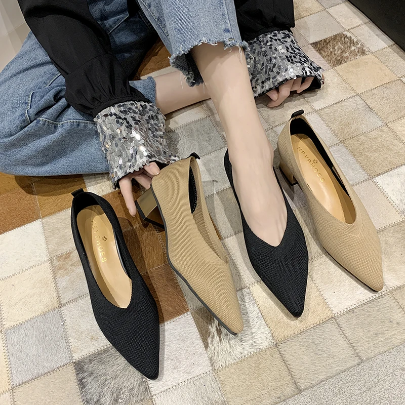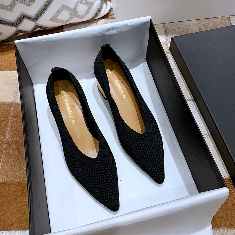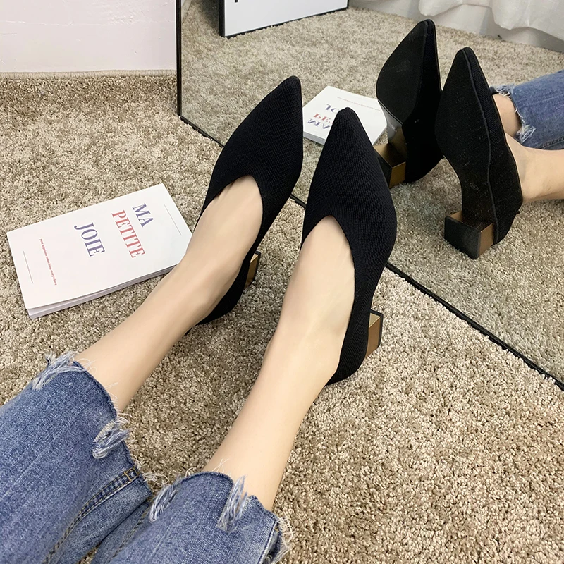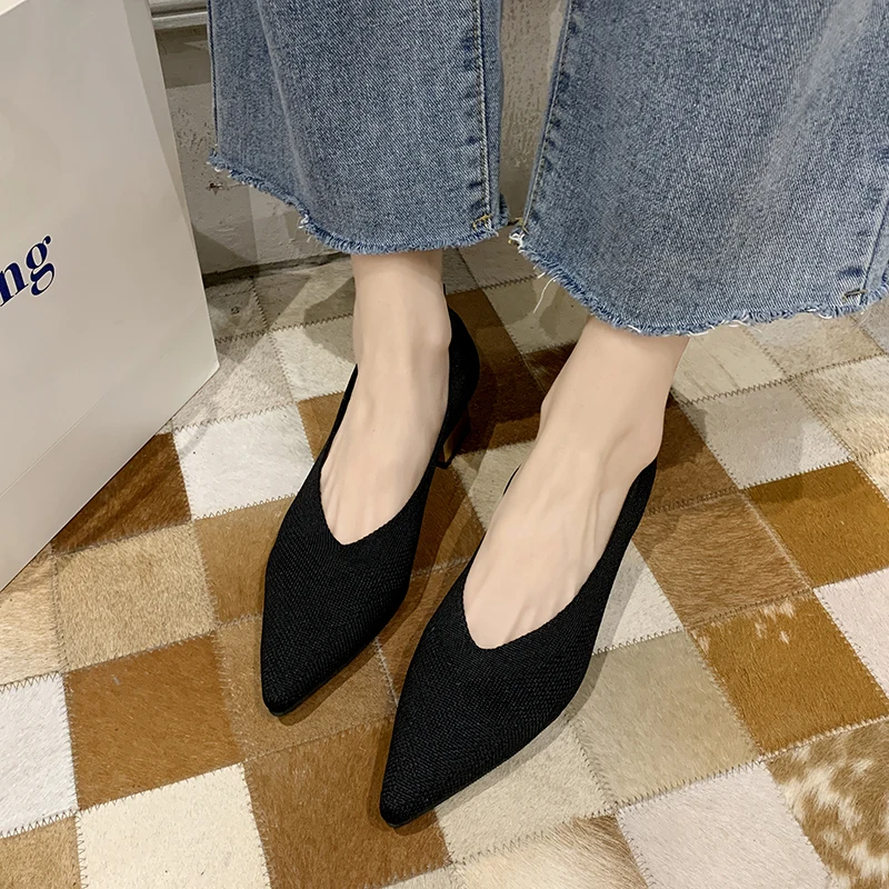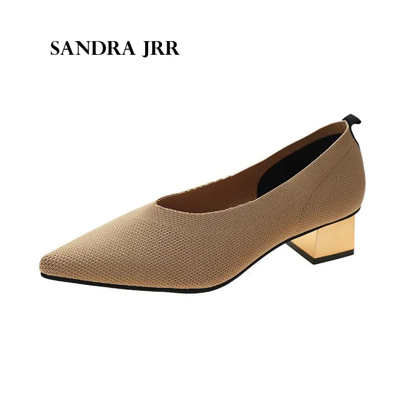 Сандра JRRженские туфли на эластичном каблуке; Сезон весна-осень; Пикантные туфли-лодочки из трикотажной ткани на среднем каблуке с V-образным вырезом
