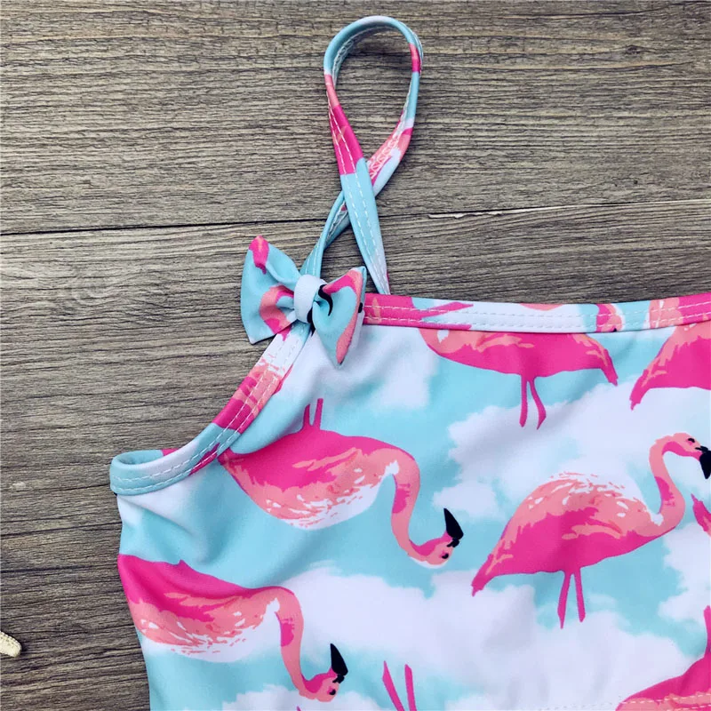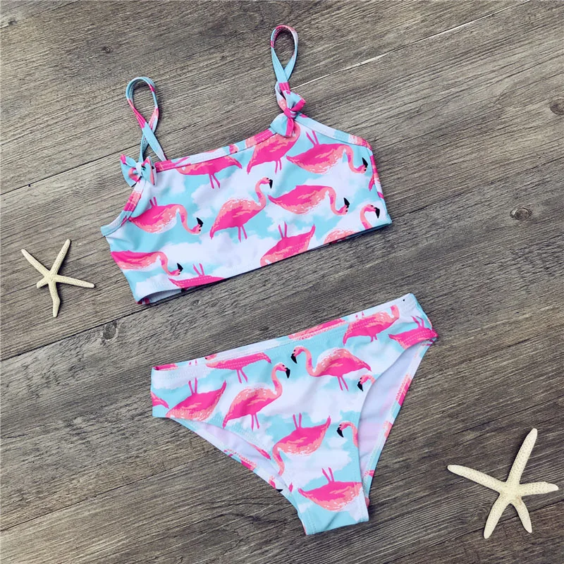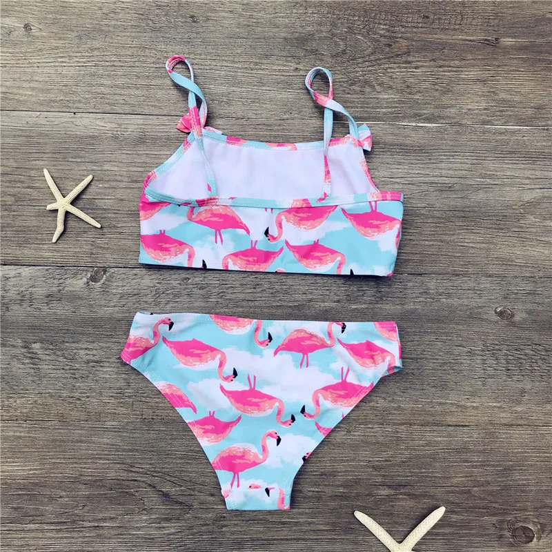 Раздельный купальник для девочек, из двух частей, с принтом фламинго