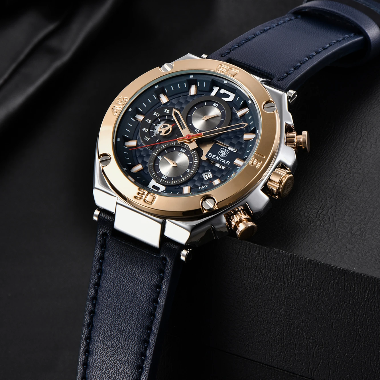Часы наручные BENYAR Мужские кварцевые, брендовые Роскошные модные, деловые