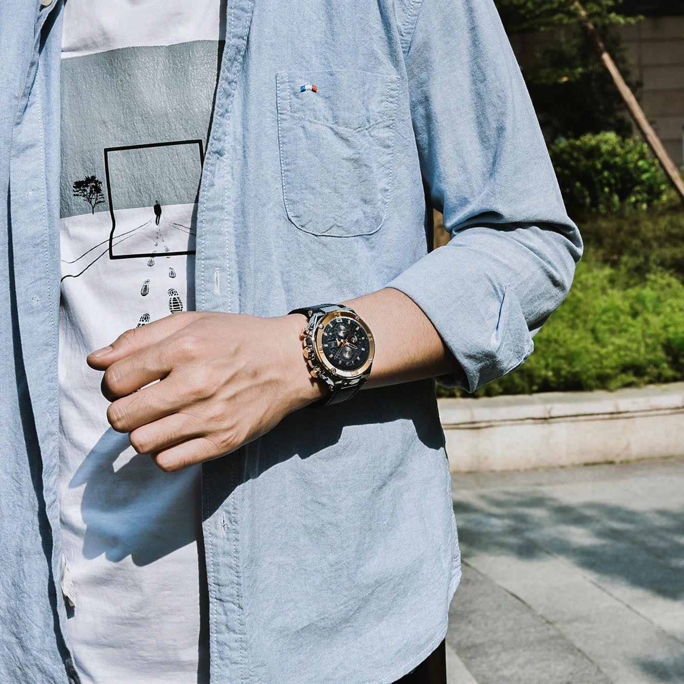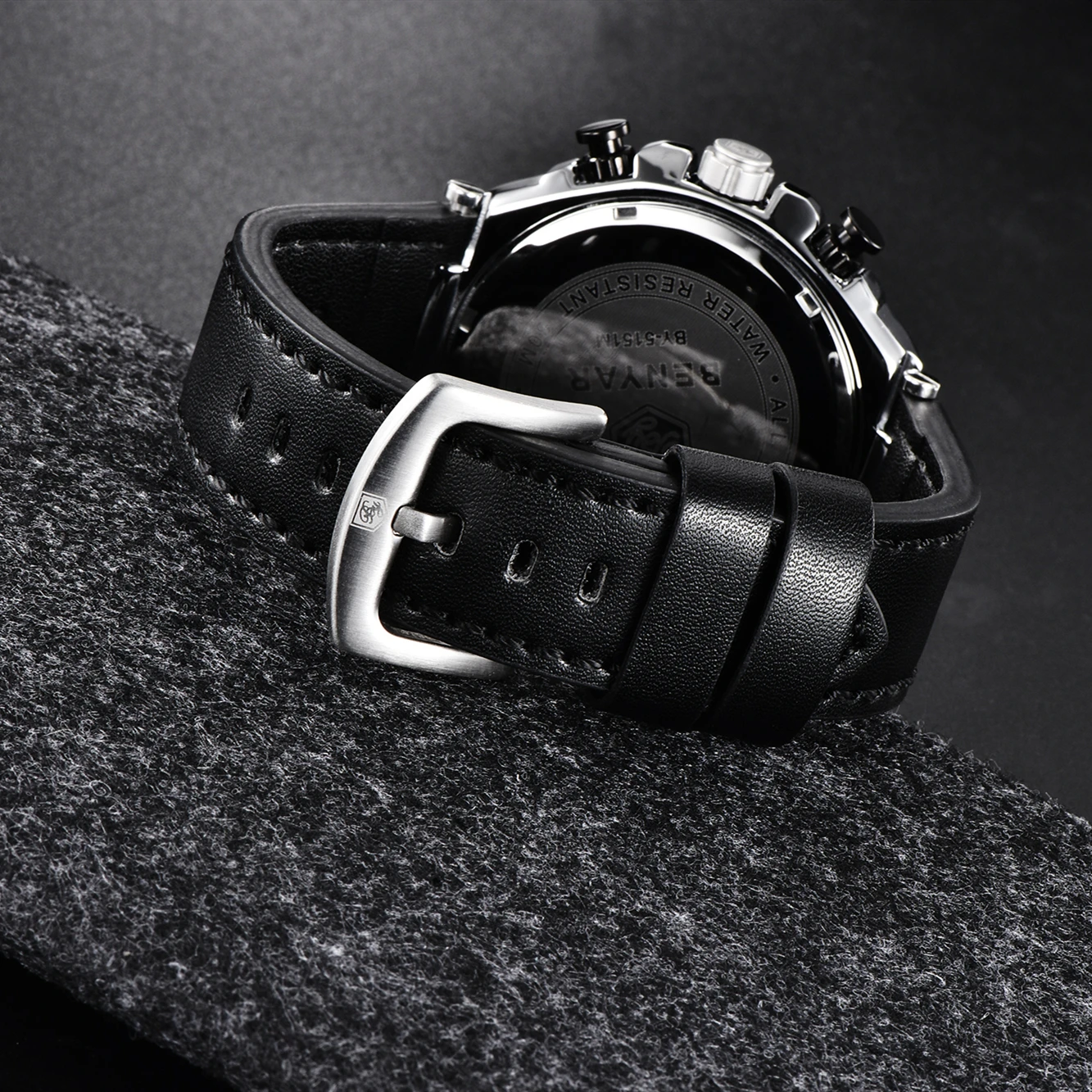 Часы BENYAR Мужские Спортивные кварцевые с хронографом и кожаным ре...