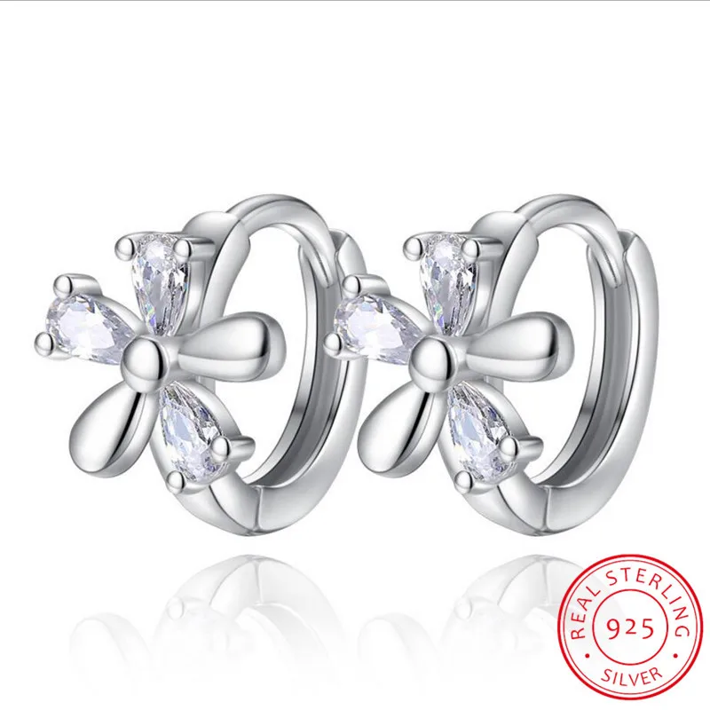 Exaggerated 925 Sterling Silver CZ Plum blossom Flower Hoop Earring...
