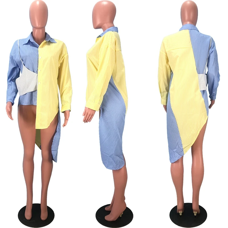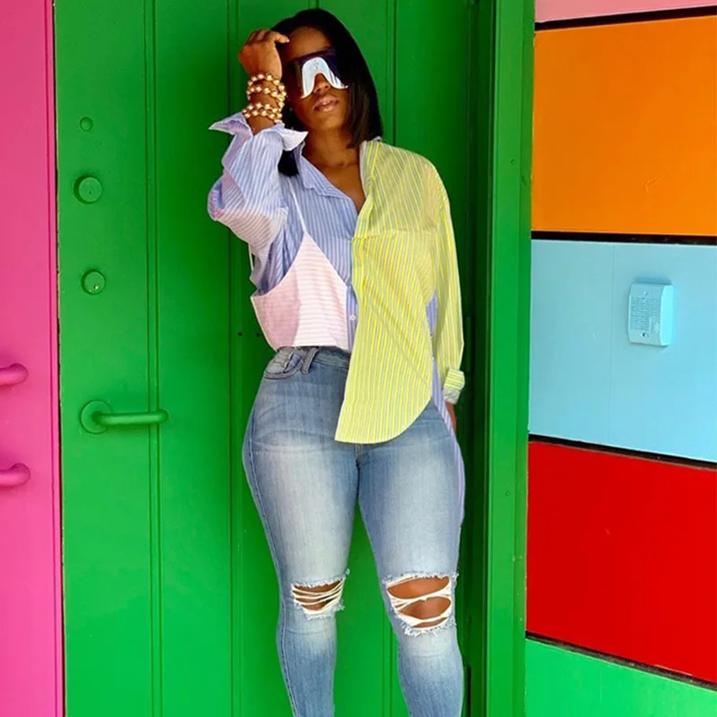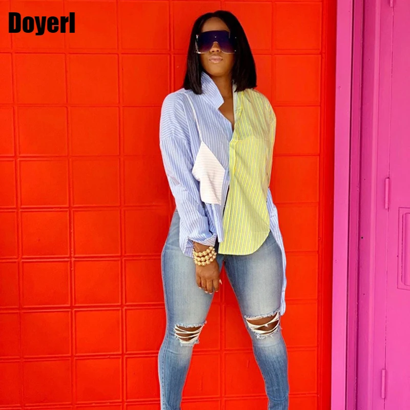 Женская блузка в полоску, с отложным воротником и длинным рукавом