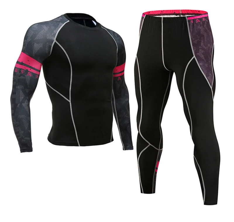 Термобелье мужское, спортивный костюм из 2 предметов, быстросохнущая футболка с длинным рукавом