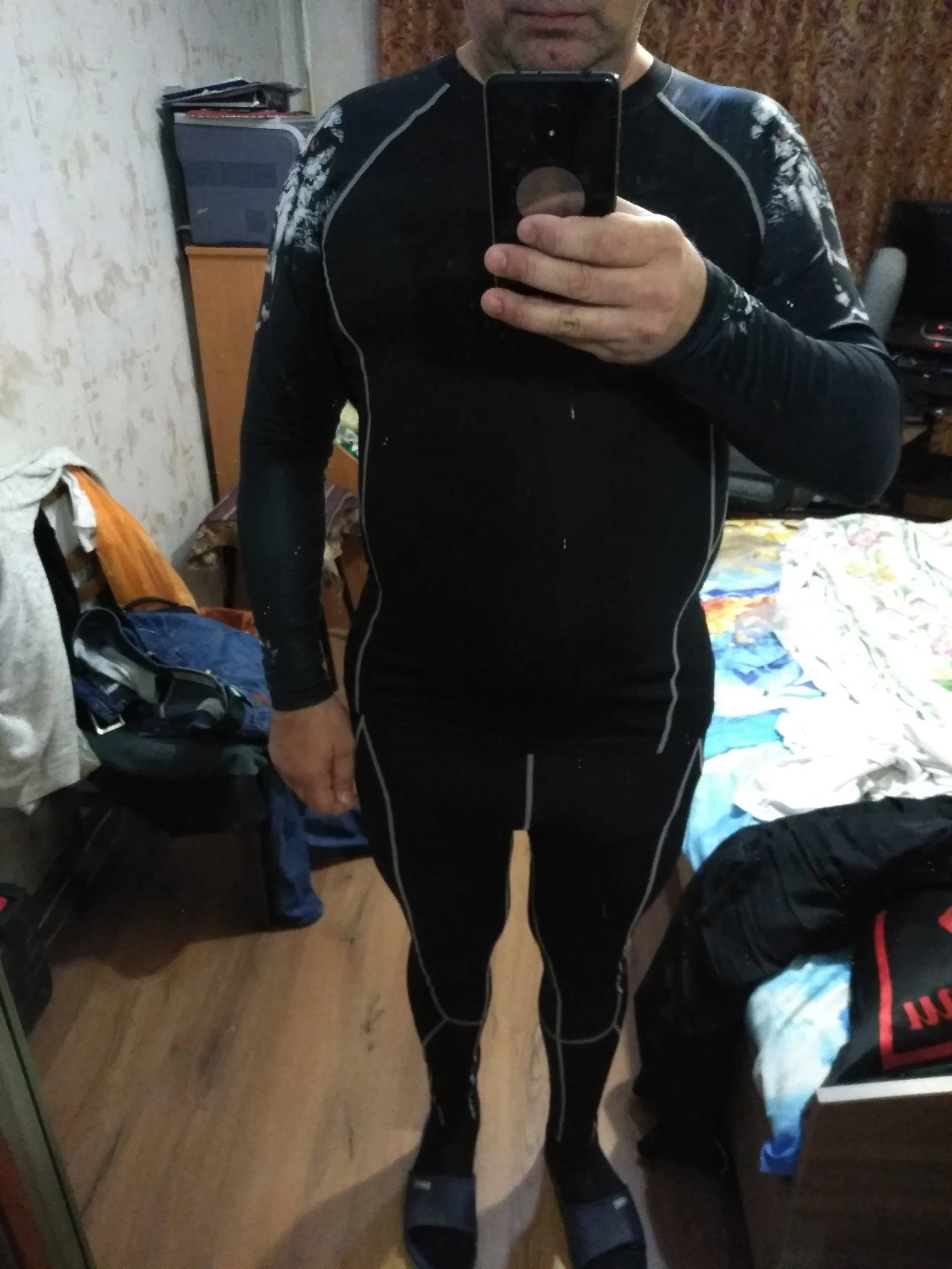 На 190/115кг налез), верх збс, низ носить можно, но лучше сядут еще на меньший вес. Отправка быстро, доставка быстро, качество нормальное, брал около 1200₽. Это не термо! Для зала или осень весна и прохладное лето. Попробую зимой на лыжах и бегом, но думаю чуда небудет, не термооо. Потею сильно, после 10ки шапку выжимаю, верх почти насквозь всегда. В аналогичной ткани катаю на велике и бегаю в холодное межсезонье.