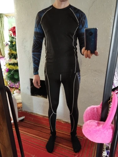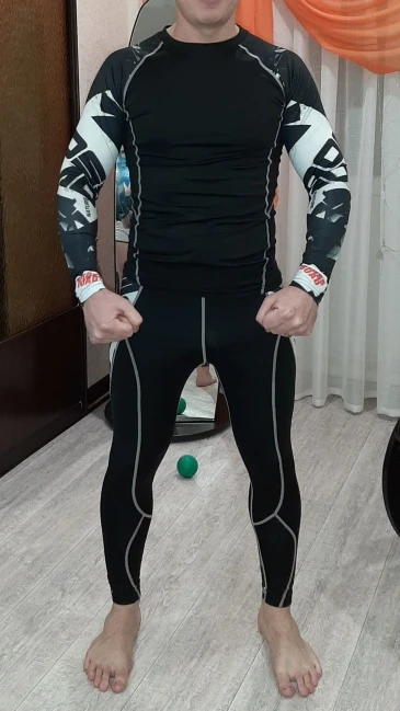 Пришедшая ко мне компрессионка ну очень классная) Брал для игры в баскетбол, очень классно играется. Очень стильная и выполняет свои функции некого подогрева и сдерживания пота по всему телу. Играть стало гараздр комфортнее. Материал приятен коже. Брал в соответствии с русскими размерами. Так на себя очень полного (рост 175 и вес 92) XXL подошла идеально. За такое и 1000 рублей не жалко))) спасибо продавцу)