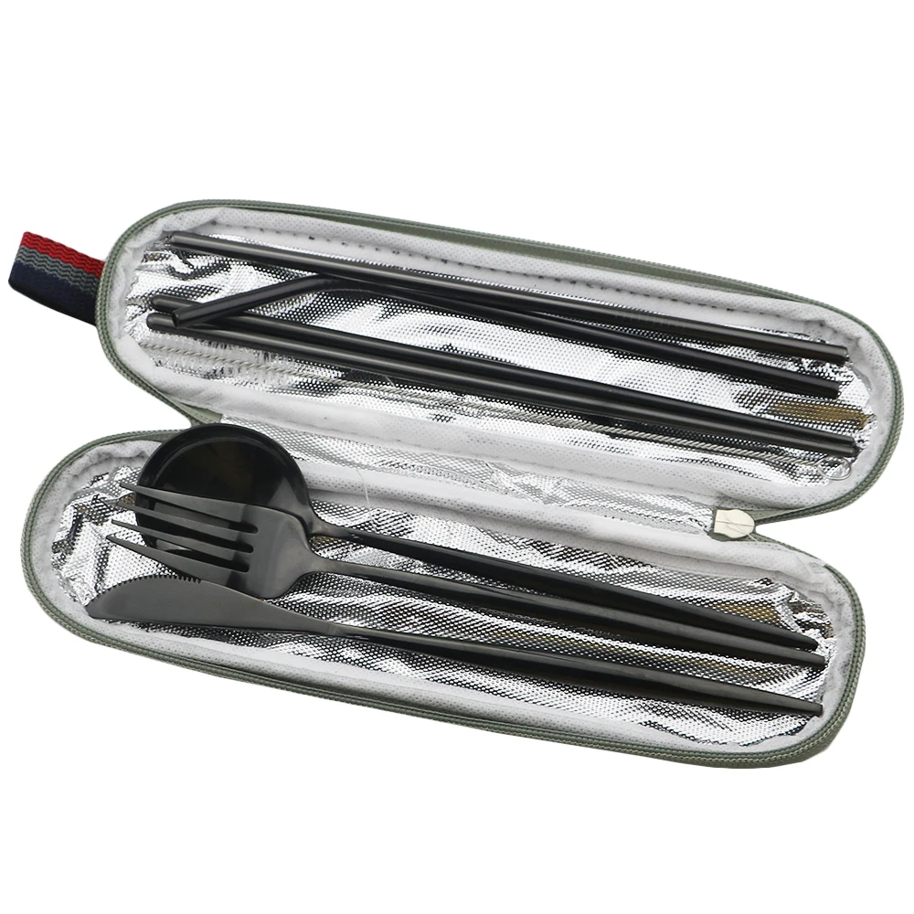 148 портативных блестящих золотых столовые приборы для путешествий набор столовых приборов из нержавеющей стали набор ложек вилка, нож, столовые приборы с палочками для еды соломинки