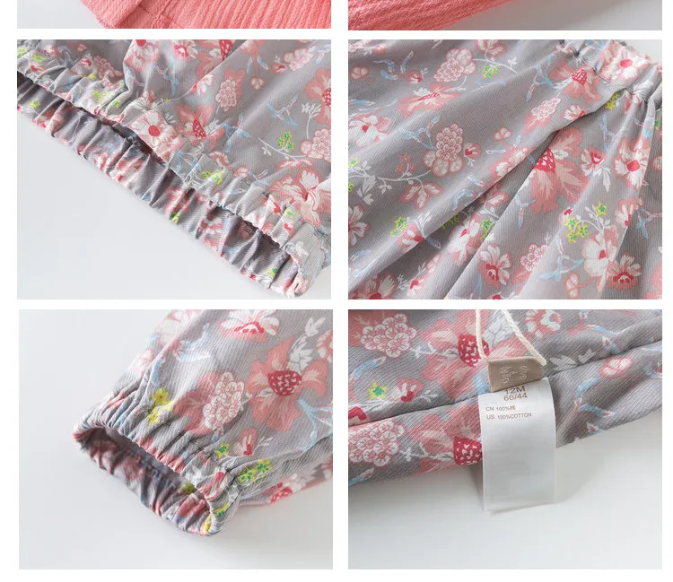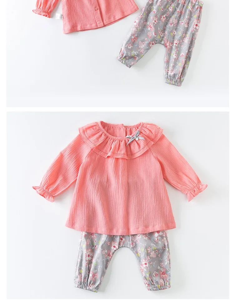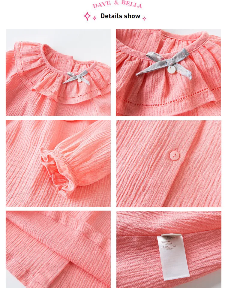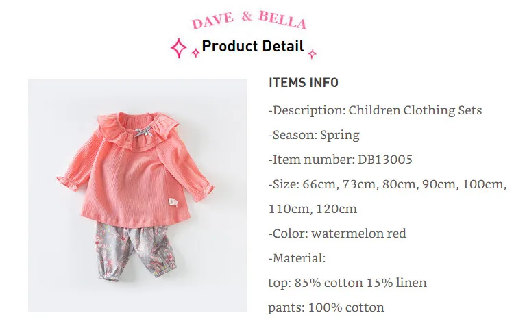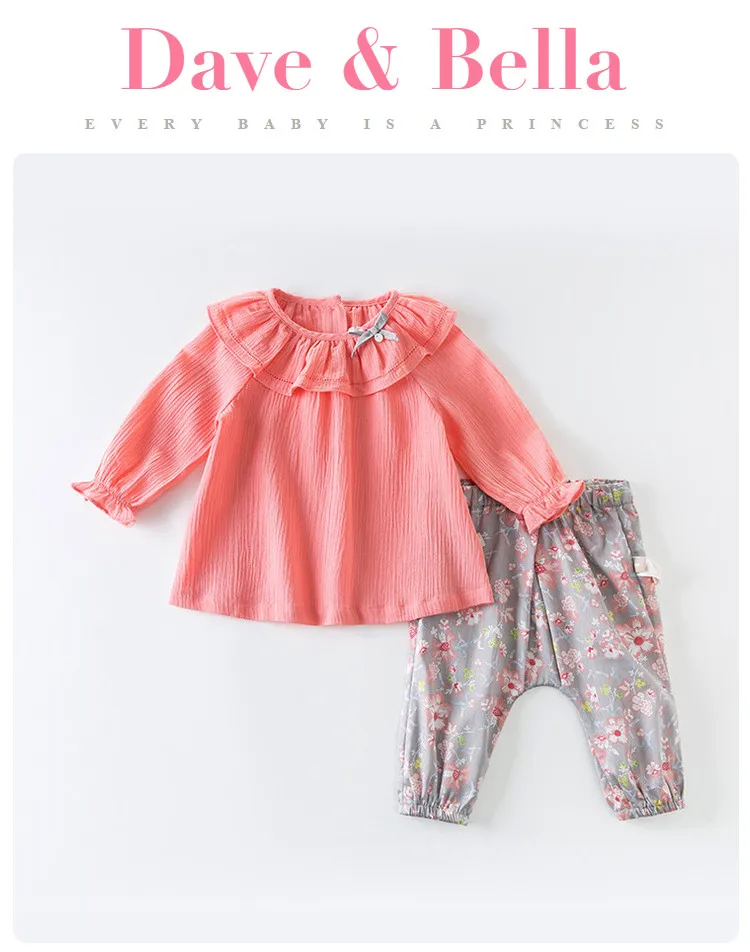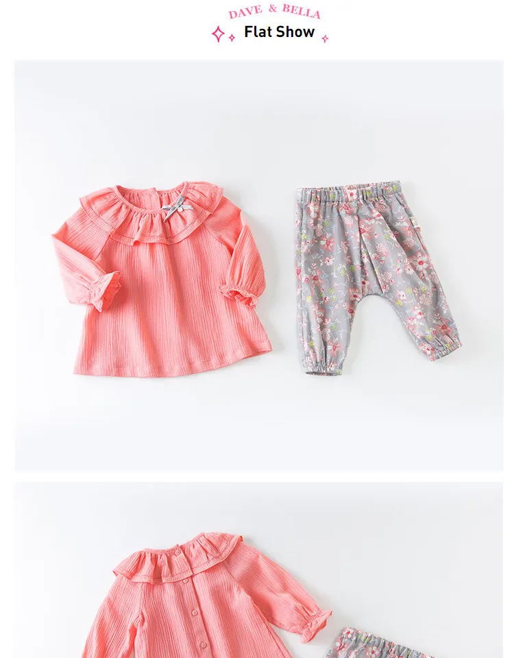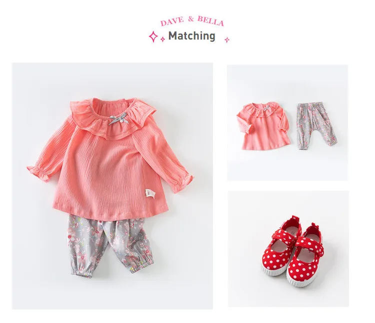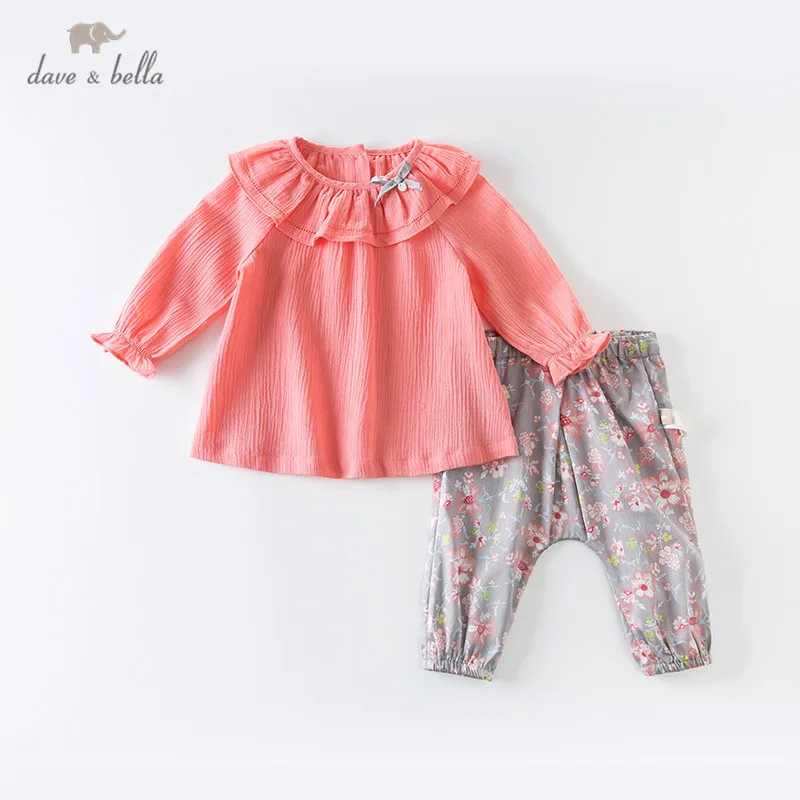 DB13005 dave bella комплект весенней одежды для маленьких девочек с цветочным принтом и бантом, милый детский комплект с длинными рукавами, Детский костюм из 2 предметов