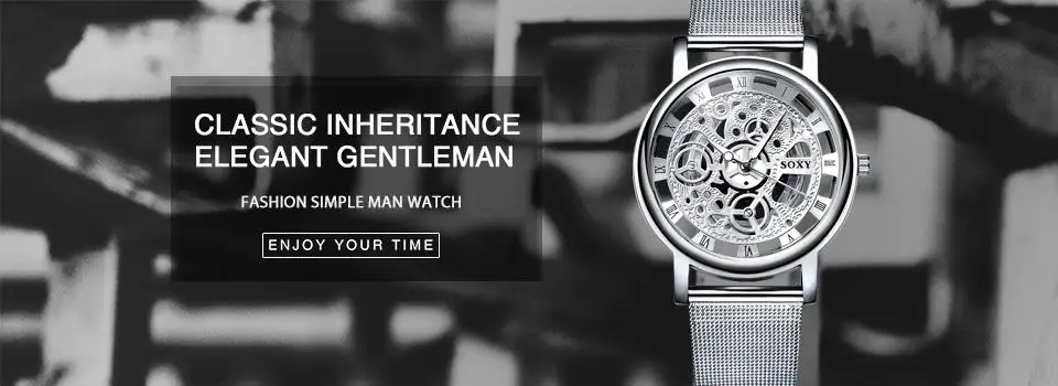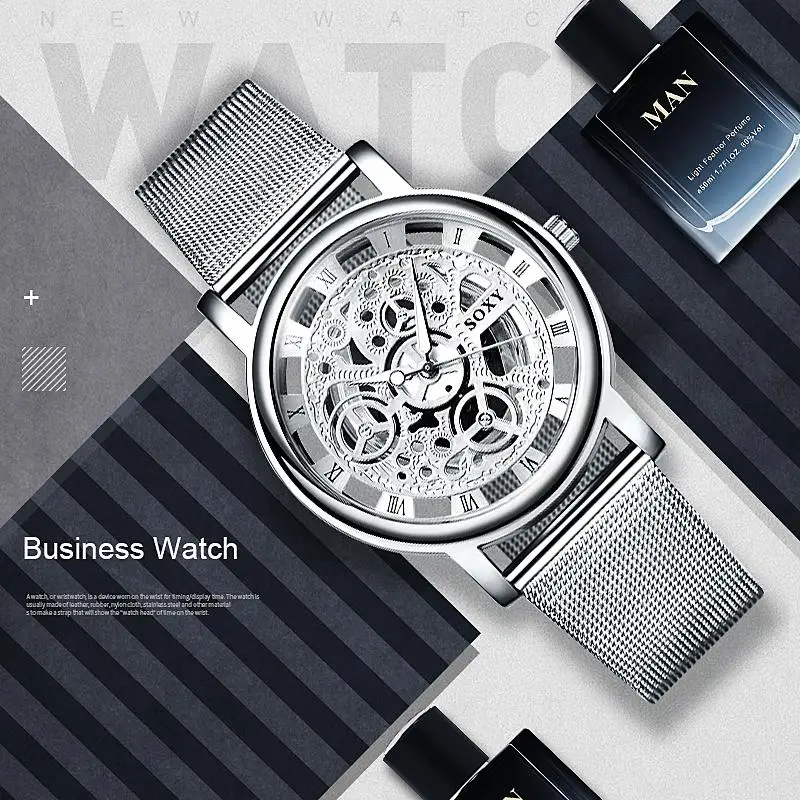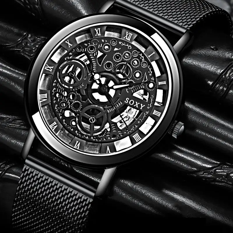 Мужские кварцевые часы SOXY, Делюкс, с полым ремешком из нержавеюще...