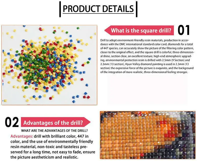 О упаковкеРазмер <= 30x40 см, пузырчатая упаковкаРазмер> 30x40 см, цветная упаковкаСпециальная упаковочная коробка высокого качества, с сопротивлением высокому давлению, высокоэластичным и высоким буфером! О эффектахЧем больше размер, тем лучше эффект!Каждый размер алмазов: 2,5x2,5 мм. Если рисунок является сложным, маленький размер, не очень хорошо! Если вам нужен большой размер любых фотографий, пожалуйста, свяжитесь с нами! Отзывы