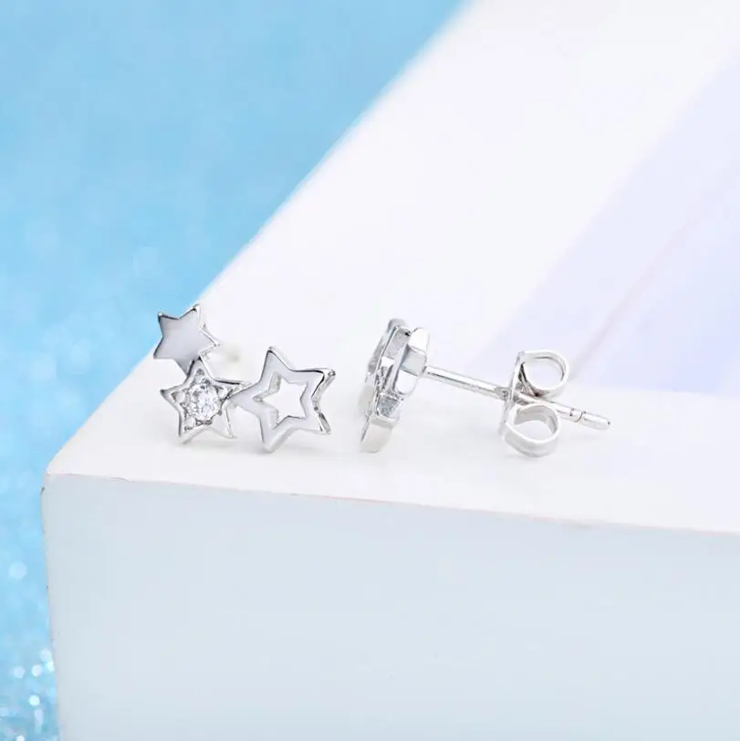 Новое поступление 925 стерлингового серебра сверкающие звезды кубического циркония маленькие серьги гвоздики для женщин модные серьги ювелирные изделия SCE437