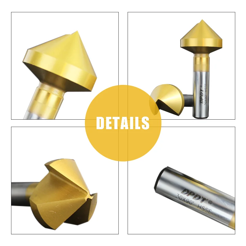 Титановая фаска UCHEER bitssingle, 3 кромки, 90 градусов, прямой хвостовик, нержавеющая сталь, круглое отверстие, обрезная машина, Зенковка