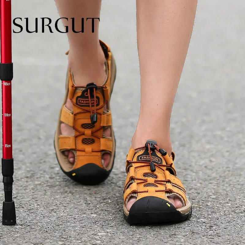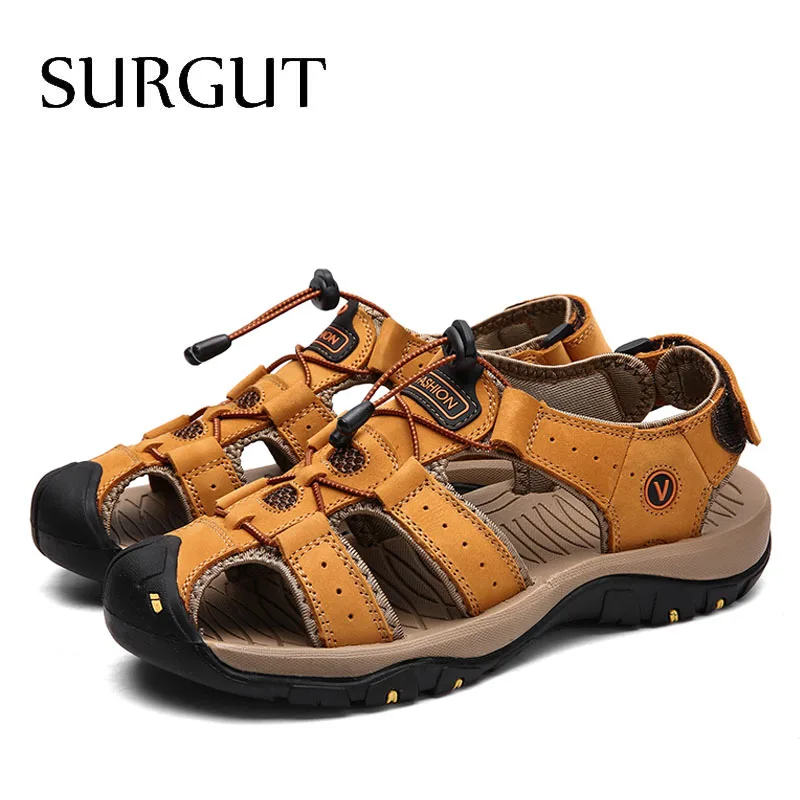 SURGUT/Новинка 2022 года; Мужская обувь; Мужские сандалии из натуральной кожи; Летняя мужская обувь; Пляжные сандалии; Мужские модные уличные классические повседневные кроссовки