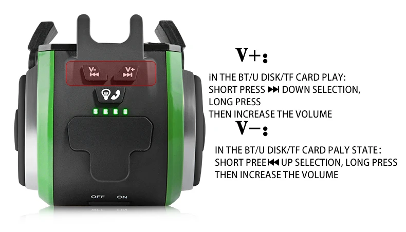 * Bluetooth V4.0 + динамик + Внешний аккумулятор + велосипедный фонарь + велосипедный звонок + кронштейн для Iphone * Водонепроницаемый, пыленепроницаемый, устойчивый к царапинам, ударопрочный, высокотемпературный динамик * Стильный и изысканный внешний вид, который удобно носить с собой, с ним вы можете наслаждаться музыкой в любое время и в любом месте * Отлично подходит для занятий спортом на открытом воздухе, упражнений и путешествий * Используется в качестве 4400MAH power bank может заряжать ваш телефон или другое устройство в чрезвычайной ситуации * Двойной светодиодный светильник s с передней и мигающий светильник на выбор * Bluetooth подключается к мобильный телефон для звонков и воспроизведения музыки * Поддержка tf-карты для воспроизведения mp3/wma/wav музыки * Мобильный телефон andriod или программное обеспечение IOS * Honking, как велосипедный звонок, ИК-сигнализация, чтобы напомнить передним автомобилям или прохожим * Поддержка вход AUX * IP54 из водонепроницаемого материала * 32 бит ARM master Платформа Дизайн и USB обновление программного обеспечения * Примечание: Не замачивайте в воде! Это только для защиты от водяного тумана! Советы: звук поступает с одной стороны, другая сторона не имеет звука.